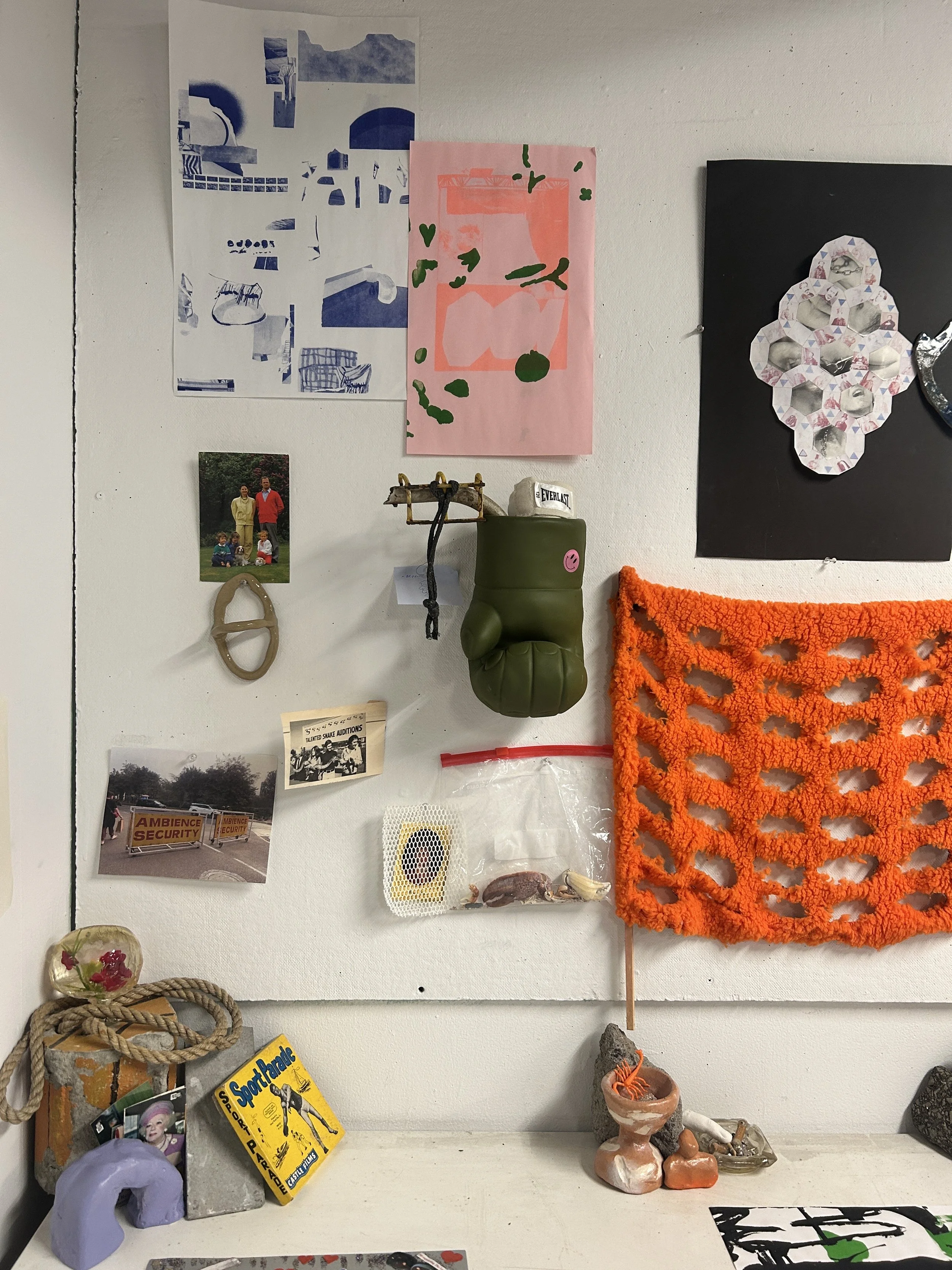 I find it always interesting to see what artists have pinned up on their walls; deadlines, to-do lists, art inspiration/mood boards, ect. It says a lot about how the artist's mind works and how they connect the dots and how it all feeds into the work. Do you have any images from the studio you would like to share with us? What do you have up on your walls currently?